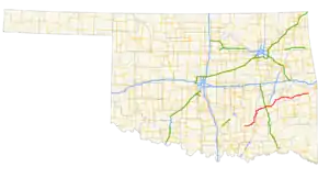 State Highway 31 (abbreviated SH-31) is a state highway in Oklahoma. It runs 132.6 miles[1] in an irregular west-to-east pattern in the southeastern part of the state.