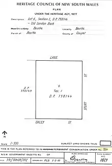 The Old London Bank is held in high regard by the community as demonstrated by its inclusion on the Register of the National Trust, the State Heritage Register, State Heritage Inventory[3] and Bourke Shire Council's LEP Heritage Schedule.[1]