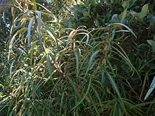 O. lacunosa can grow up to 5 metres high and has long narrow leaves that are dark green above and brown underneath.[3]