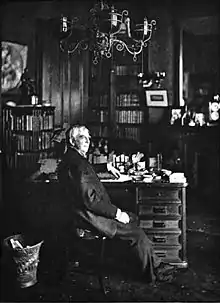 Poems by Holmes, along with those by the other Fireside or Schoolroom Poets, were often required to be memorized by schoolchildren. Although learning by rote recitation began fading out by the 1890s, these poets nevertheless remained fixed as ideal New England poets.[170] Literary scholar Lawrence Buell wrote of these poets: "we value [them] less than the nineteenth century did but still regard as the mainstream of nineteenth-century New England verse."[171] Many of these poets soon became recognized only as children's poets, as noted by a 20th-century scholar who asked about Holmes's contemporary Longfellow: "Who, except wretched schoolchildren, now reads Longfellow?"[172] Another modern scholar notes that "Holmes is a casualty of the ongoing movement to revise the literary canon. His work is the least likely of the Fireside Poets to find its way into American literature anthologies."[173]