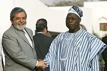 Both Murtala and Obasanjo were committed to ending ongoing European colonialism and white minority rule in southern Africa, a cause reflected in their foreign policy choices.[70] This cause increasingly became a preoccupation for Obasanjo.[71] After Angola secured independence from Portugal, a civil war broke out in the country. Nigeria recognised the legitimacy of the government declared by the MPLA, a Marxist group backed by the Soviet Union, because the rival FNLA and UNITA were being assisted by the white minority government in South Africa.[72] As well as providing material aid to the MPLA,[73] Nigeria began lobbying other African countries to also recognise the MPLA administration, and by early 1976 most states in the Organisation of African Unity (OAU) had done so.[71] In February 1976, Obasanjo led a Nigerian delegation to an MPLA anniversary celebration in Luanda, where he declared: "This is a symbolic date, marking the beginning of the final struggle against colonialism, imperialism and racism in Africa."[71]