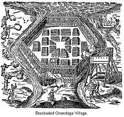 The Onondaga very much enjoyed sports and physical activity. Lacrosse and foot races were always known to be favorites of the Onondaga people.[16] They also adopted many games from European settlers such as mumble the peg, marbles, some games of ball, pull away, and fox and geese in the snow.[16] Hide and seek and blindman's bluff were played but no games with song.[16]