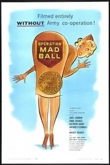Operation Mad Ball is a 1957 military comedy from Columbia Pictures, produced by Jed Harris, directed by Richard Quine, that stars Jack Lemmon, Ernie Kovacs, Kathryn Grant, Arthur O'Connell, and Mickey Rooney. The screenplay is by Blake Edwards, Jed Harris, and Arthur Carter, based on an unproduced play by Carter.[2]