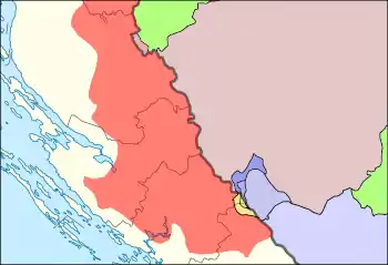 Following the 1990 electoral defeat of the government of the Socialist Republic of Croatia, ethnic tensions grew. The Yugoslav People's Army (Jugoslovenska Narodna Armija – JNA) confiscated Croatia's Territorial Defence (Teritorijalna obrana) weapons to minimize resistance.[1] On 17 August, the tensions escalated into an open revolt by Croatian Serbs,[2] centred on the predominantly Serb-populated areas of the Dalmatian hinterland around Knin,[3] parts of the Lika, Kordun, Banovina and eastern Croatia.[4] This was followed by two unsuccessful attempts by Serbia, supported by Montenegro and Serbia's provinces of Vojvodina and Kosovo to obtain the Yugoslav Presidency's approval of a JNA operation to disarm Croatian security forces in January 1991.[5] After a bloodless skirmish between Serb insurgents and Croatian special police in March,[6] the JNA, supported by Serbia and its allies, asked the federal Presidency declare a state of emergency and grant the JNA wartime powers. The request was denied on 15 March, and the JNA came under control of Serbian President Slobodan Milošević. Milošević, preferring a campaign to expand Serbia rather than preservation of Yugoslavia, publicly threatened to replace the JNA with a Serbian army and declared that he no longer recognized the authority of the federal Presidency.[7] By the end of March, the conflict had escalated into the Croatian War of Independence.[8] The JNA stepped in, increasingly supporting the Croatian Serb insurgents and preventing Croatian police from intervening.[7] In early April, the leaders of the Croatian Serb revolt declared their intention to integrate the area under their control with Serbia. The Government of Croatia viewed this declaration as an attempt to secede.[9]