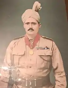 - Subadar Major and Honorary Captain Sardar Bahadur Ghafur Khan OBI, IDSM late 4/15th Punjab Regiment.[14]
