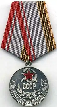 3rd class Орден «За службу Родине в Вооружённых Силах СССР» третьей степени Orden «Za službu Rodine v Vooruzhennykh Silakh SSSR» tret'ej stepeni |