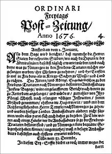 Ordinari Freytags Post-Zeitung is the first newspaper to be published in the Baltic Region in 1675 in Reval. It was published in the German language by Christoph Brendenken.[1][2][3][4]
