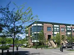 Orenco Station was developed on 209 acres (0.85 km2) in the east-central area of Hillsboro.[4] The master developer, Pacific Realty Associates (PacTrust), along with its residential partner Costa Pacific Homes, designed it to mimic older neighborhoods and be more pedestrian-friendly than traditional suburbs.[4] Zoning ordinances were changed to allow narrower streets, side-yard easements, garages on alleys, and measures to allow live-work homes, among other changes.[4] The development was a mixed-used neighborhood combining both retail and residential along the light rail line and in the middle of high-tech employers.[4] Residential options include apartments, single-family dwellings, condominiums, and town homes.[4] Orenco Station also contains a large park named Central Park located just north of the retail core, along with smaller parks spread throughout the development as a trade-off for smaller yards created by the smaller lot sizes in the development. Homes in the development are situated closer to the street than in traditional developments, and all were built with Category 5 cable installed in the dwellings.[4]