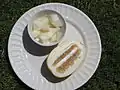 The Korean name chamoe (참외 [tɕʰa.mwe]) is a composite of words: cham meaning "true" or "real" and oe meaning "cucumber (melon)".[4] It is thought that the oriental melon was introduced to Korea through China during the Three Kingdoms period.[3][4][5][11] The fruit has long enjoyed popularity in Korea, where it is considered the representative fruit of summer.[7] Oriental melons are commonly made into a side dish, called chamoe-jangajji, whereby they are pickled with spices.[3] In 2017, 41,943 hectares (103,640 acres) of land was used for their cultivation, yielding about 166,281 tonnes (183,293 short tons) of melons.[12] Seongju County in North Gyeongsang Province, South Korea is famous as the centre of oriental melon cultivation in Korea, with farms in the area comprising 70% of total production in the country.[7]