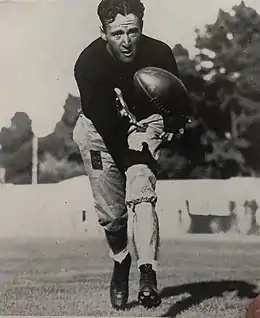 Orville Ernest Mohler (May 29, 1909 – November 26, 1949), sometimes referred to as Orv Mohler, was an American football and baseball player. He grew up in Alhambra, California, and attended the University of Southern California (USC). His father was a second baseman in the Pacific Coast League.[1] While attending USC, the younger Mohler was the student council president, played baseball and played at the quarterback position for the USC Trojans football team.[2][3] He led the 1931 USC Trojans football team to a national championship and a victory in the 1932 Rose Bowl, and, at the end of the 1931 season, he was selected by the Central Press Association as a second-team All-American fullback and by the Associated Press as a third-team All-American quarterback.[4][5] In 1933, after graduating from USC, Mohler played professional baseball in the Pacific Coast League for the Mission Reds. He was married in 1933 to Bernadine Olson.[2] He died in the crash of an Air Force plane in 1949 and was posthumously inducted into the USC Hall of Fame in 1995.[6] He was buried at the Forest Lawn Memorial Park in Glendale, California.[7]