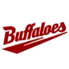 A stylized buffalo's head with angry-looking red eyes (designed by Okamoto Taro), or "Buffaloes" in red script, outlined with white.