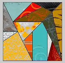 Ostomachion, also known as loculus Archimedius (Archimedes' box in Latin) and also as syntomachion, is a mathematical treatise attributed to Archimedes. This work has survived fragmentarily in an Arabic version and a copy, the Archimedes Palimpsest, of the original ancient Greek text made in Byzantine times.[1] The word Ostomachion has as its roots in the Greek Ὀστομάχιον,[2] which means "bone-fight", from ὀστέον (osteon), "bone"[3] and μάχη (mache), "fight, battle, combat".[4] Note that the manuscripts refer to the word as "Stomachion", an apparent corruption of the original Greek. Ausonius gives us the correct name "Ostomachion" (quod Graeci ostomachion vocavere, "which the Greeks called ostomachion"). The Ostomachion which he describes was a puzzle similar to tangrams and was played perhaps by several persons with pieces made of bone.[5] It is not known which is older, Archimedes' geometrical investigation of the figure, or the game. Victorinus,[6] Bassus[7] Ennodius[8] and Lucretius[9] have talked about the game too.