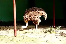 Struthio is a genus of birds in the order Struthioniformes, whose members are the ostriches. It is part of the infra-class Palaeognathae, a diverse group of flightless birds also known as ratites that includes the emus, rheas, and kiwis. There are two living species of ostrich, the common ostrich and the Somali ostrich.[2] They are large flightless birds of Africa who lay the largest eggs of any living land animal. With the ability to run at 70 km/h (43.5 mph), they are the fastest birds on land. It is farmed worldwide, particularly for its feathers as they are used as decoration and feather dusters. Its skin is also used for leather products.