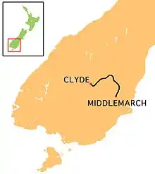 The trail runs in an arc between Middlemarch and Clyde, along the route of the former Otago Central Railway. The trail has become a popular tourist attraction, with 10,000–12,000 users per year as a conservative estimate, and yearly (and ongoing) user increases for 6 out of the last 7 years (as of 2011).[1][4] The trail is also accepted as being, by a large margin, the biggest non-farming economic factor in the Maniototo-Alexandra area.[5]