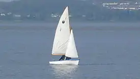 Otter is a classification referring to a particular design for a two-man sailing dinghy with a glass fibre hull. Its rig consists of a main, a jib and an optional symmetric spinnaker. The hull dimensions are 11 ft 11 in length and 4 ft 10 in beam. The boat has a draft of 3 ft 6 in with the centreboard down. The sail area (main and jib) is 75 sq. ft.[1] The class symbol is a stylised glass bubble; due to the original lightweight "cigar box cedar" construction of the prototypes, the name 'Bubble' was first used for the boat.[2] John Baker obtained the plans for an expanded version of the boat in G.R.P. and hence renamed the boat 'Glass Bubble'.[3] After being put into production by Baker, the name 'Otter' was adopted; coming from the river of the same name in East Devon, close to where the boat was manufactured.