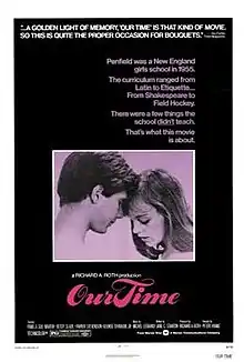 Our Time (also known as Death of Her Innocence) is a 1974 American drama film directed by Peter Hyams. The film was written by Jane C. Stanton, and stars Pamela Sue Martin, Parker Stevenson and Betsy Slade. The story is set at a Massachusetts school for girls in the 1950s. Though not a hit, it was liked as a study of a boy-girl relationship.