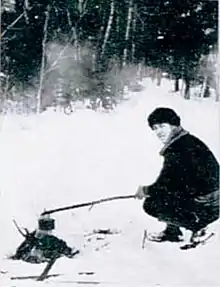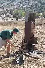 Backwoods cooking is a method of cooking without the use of kitchen implements.[4] It commonly takes place in the backwoods, often in combination with wild or conventional camping. Some variants of backwoods cooking allow the use of items of cookware such as a cooking pot;[5] however there are many recipes without any. Some backwoods alternatives to cookware include: aluminium foil,[4] fruit skins[6] and heated stones.[7] Traditionally backwoods cooking takes place over a wood-burning fire because wood is the most available fuel source in the backwoods.[8] As a result, some recipes include information about the intensity of the fire to be used.[6]