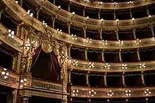 The auditorium of the Teatro Massimo, the biggest in Italy, and one of the largest of Europe