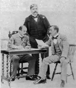 Hall declared bankruptcy first at the age of 29, during his early career as a solicitor, having run up debts of more than £27,000. He was back in bankruptcy court six years later, in 1888. Even after his theatrical success and high salary from Edwardes, he was bankrupt again in 1898.[17] His constant financial trouble stemmed from his gambling and extravagant entertaining of his friends. The pseudonym "Owen Hall" was an ironic nod ("owin' all") towards his extensive debts, as was another of his pseudonyms, "Payne Nunn" ("payin' none").[17] His sister Eliza recalled: "As a lawyer he gave advice freely to his friends; as a racehorse owner he indulged his prodigal proclivities in the world of hangers-on; during his editorial and play-writing epochs he was lavish in his hospitality ... and he voiced his belief that he 'had enjoyed every experience except death and solvency'."[23] She wrote that, during his bankruptcy proceedings, Hall quipped irreverently: "Now I know that my Receiver liveth".[24] His nephew Gilbert recalled that Hall said: "You can trust me with anything except a pretty girl or a sovereign."[24]