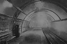 - The southbound line runs along the former entrance passageway and was connected to the abandoned stair shaft through the original cross passage to relieve congestion.[36]