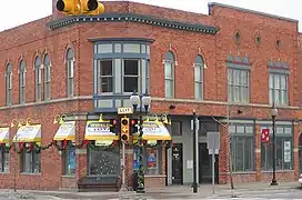 The Oxford Downtown Historic District covers two commercial blocks of Washington Street, centered on Burdick, as well as two buildings near the intersection fronting on Burdick. The district contains 44 buildings and structures, 34 of which contribute to the historic nature of the district. The buildings are predominantly commercial, although some had social or governmental uses historically. The buildings are one to three stories in height, and are constructed in a range of architectural styles, including Italianate, Queen Anne, Neoclassical, Art Deco, and Colonial Revival. Just over half of the buildings were constructed in the late 19th century, over about 1880–1899, while half the remainder were constructed from 1900 to 1922.[2]