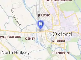 South of the station immediately west of the railway tracks is Osney Cemetery, established in 1848 just before the current station site. Nearby is the site of the former Osney Abbey.