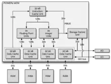 Improvements over the POWER1 included enhancements to the POWER instruction set architecture (consisting of new user and system instructions and other system-related features), higher clock rates (55 to 71.5 MHz), an extra fixed point unit and floating point unit, a larger 32 KB instruction cache, and a larger 128 or 256 KB data cache. The POWER2 was a multi-chip design consisting of six or eight semi-custom integrated circuits, depending on the amount of data cache (the 256 KB configuration required eight chips). The partitioning of the design was identical to that of the POWER1: an instruction cache unit chip, a fixed-point unit chip, a floating-point unit chip, a storage control unit chip, and two or four data cache unit chips.