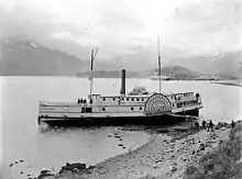 After her trial run on the lower Willamette and Columbia rivers, she was sold to a consortium of John T. Bradford, some Canadian stockholders and three brothers, Tom, John T. and George S. Wright, who were early steamboat operators in the Pacific Northwest.[2] Under Capt. J.G. Hustler,[5] she was brought around to Victoria, arriving in March 1859.[2] Because of the Fraser River Gold Rush, there was a shortage of steamboats in British Columbia in 1858-1859. This had a number of effects on the Canadian west coast, perhaps the most important of which was the establishment of British Columbia as a separate colony from Vancouver Island. For the American steamboats, they benefitted by decision of Canadian governor James Douglas to grant "sufferances" to them to allow them to work on the Victoria to Fraser River route at a levy of $12 per run.[6]