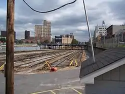 The project's name, devised by developer Forest City Ratner,[7] relates to the rail yard located between Atlantic Avenue and Pacific Street. Officially, the Long Island Rail Road yard is called the "Vanderbilt Yard" by the Metropolitan Transportation Authority (named for Vanderbilt Avenue that crosses over on its way to the Brooklyn Navy Yard). The LIRR's nearby Atlantic Terminal station is the westernmost stop of the Atlantic Branch. Easy access by rapid transit and suburban rail, and the desirable brownstone housing stock nearby made it a target for speculative development.