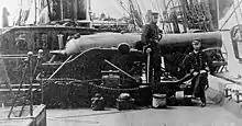 The United States Navy adopted the design, and equipped several ships with 8-inch guns of 63 and 55 cwt. in 1845, and later a 10-inch shell gun of 86 cwt. Paixhans guns were used on USS Constitution (four Paixhans guns) in 1842, under the command of Foxhall A. Parker, Sr., USS Constellation in 1854, and were also installed on the USS Mississippi (10 Paixhans guns), and USS Susquehanna (six Paixhans guns) during Commodore Perry's mission to open Japan in 1853.[8][9]