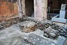 The Palace of Cortés archeological site extends from under the palace itself to the main square of the city. The palace was built over a “tlatlocayacalli” or place where tribute was collected beginning with the area's Tlahuica rulers and later the Aztecs. This tribute house was very likely extensive and luxurious as the then city-state was powerful. This function as a symbol of power prompted the Spanish to destroy it and replace it with a structure of their own. The old Tlahuica/Aztec structure is best seen in the areas in front of the current palace and in the courtyards of the same. It is one of the few Aztec era palaces that have been excavated by archeologists. However, little of the original building remains after it was destroyed by Cortés.[6][9]