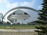 Palau de les Arts Reina Sofía (Valencian: [paˈlaw ðe lez ˈaɾdz ˈrejna soˈfi.a]; Spanish: Palacio de las Artes Reina Sofía; anglicised as "Queen Sofía Palace of the Arts") is an opera house, performing arts centre, and urban landmark designed by Santiago Calatrava to anchor the northwest end of the City of Arts and Sciences in Valencia, Spain.[1] It opened on 8 October 2005; its first opera staging was of Beethoven's Fidelio on 25 October 2006. Tenor and conductor Plácido Domingo has maintained a special relationship with the Palau since its founding and has established a young singers training program there.[2]