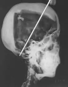 A recent CT scan of Tutankhamun in 2006 was able to provide evidence against the 'homicide theory'.[2][6] A depression fracture noted on the skull from X-rays taken 30 years previously was found to be a post-mortem injury rather than a cause of death.[6] The hole in the head had been created in order to continue the embalming process of mummification.[10] This CT investigation was also able to confirm Tutankhamun's age of death as nineteen and disprove the idea that the young pharaoh had suffered from scoliosis; rather the bend in his spine was from additional post-mortem damage to the body.[10]