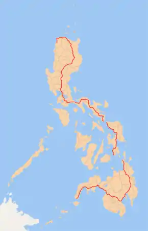 ![]() Map of the Philippines showing the route of Pan-Philippine Highway | ||||
