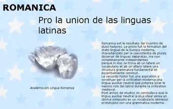 Interlingua Romanica (or simply 'Romanica') is a Romance zonal constructed language proposed to be used as a regional international auxiliary language for the Latin world. It is a reformed version of the constructed international auxiliary language Interlingua and was developed in 2001 by the English-speaking Canadian interlingualist Richard Sorfleet and the Spanish- and Basque-speaking Basque school teacher Josu Lavin. They presented it on the internet that same year on Latinity's Day (the 15th of May, a celebration established by the Latin Union).