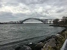 Several ports, including the ports of New York and New Jersey, Norfolk, and Baltimore, all on the East Coast of the United States, have already increased their depth to at least 50 feet (15 m) to accommodate New Panamax ships; in 2015 the Port of Miami achieved the same in a project known as the "Deep Dredge"[14] and is the closest deep-water port to the Panama Canal in the US. Liverpool built a new container terminal, Liverpool2, where ships berth in the tidal river rather than in the enclosed docks, coinciding with the opening of the widened Panama Canal locks. In Halifax a major expansion of the South End Container Terminal was completed in 2012, extending the pier and increasing the berth depth from 14.5 to 16 metres (48 to 52 ft).[15] In 2017, the Port Authority of New York and New Jersey raised the clearance of the Bayonne Bridge to 215 feet (66 m), at a cost of $1.7 billion, to allow New Panamax ships to reach container port facilities at Port Newark–Elizabeth Marine Terminal.[16] Previously, only GCT Bayonne, Global Container, could handle the New Panamax ships.