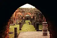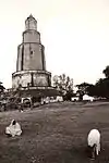 According to Binoy Ghosh, the tall Pandua minar can be seen by those travelling in trains or along the Grand Trunk Road. It is locally said that Shah Sufiuddin defeated the Hindu king of the Pandua and Mahanad area and built this victory pillar. Mahiuddin Ostagar of Santipur composed a poem, Panduar Kechha, in which he describes how Muslim domination of the area was achieved. There was a king named Pandu in Pandua. Inside his palace there was a well blessed by the gods. When the body of a dead person was immersed in its waters, the person regained life. During the reign of king Pandu, mostly Hindus lived in Pandua, and there were a few Muslims. One day a Muslim peasant killed a cow on his son’s birthday. This enraged the Hindus and they killed the son. The Muslim peasant complained to king Pandu but he did not take any action. The peasant carried the dead body of his son to the Badshah at Delhi, Feroze Shah. After listening to the complaint, he sent his nephew, Shah Sufi, at the head of an army, to Pandua. He waged war but initially he was unsuccessful, because of the life-giving properties of the divine well. Frustrated Shah Sufi was almost on the verge of returning to Delhi, when a cowherd boy revealed the secret of the divine well to Shah Sufi. The boy, dressed as a yogi, entered the palace and threw some beef into the well, thereby destroying its divine properties. The Muslim forces captured Pandua, and Shah Sufi remained back in Pandua. He built a large mosque there.[7]