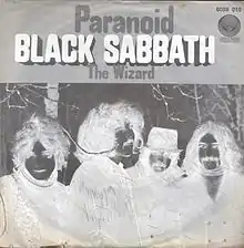 "Paranoid" is a song by the British heavy metal band Black Sabbath, featured on their second album Paranoid (1970). It is the first single from the album, while the B-side is the song "The Wizard". It reached number 4 on the UK Singles Chart and number 61 on the Billboard Hot 100.[1]