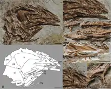 Parapengornis is an extinct genus of enantiornithine bird from the Lower Cretaceous of what is now China. The holotype specimen was discovered in the Jiufotang Formation near Lingyuan, western Liaoning province, and was catalogued as IVPP V18687. The nearly complete, articulated specimen is preserved on a slab and has impressions of pennaceous feathers. Only parts of the sternum, the left hand, and right foot are missing. In 2015, it became the basis of the new genus and species Parapengornis eurycaudatus, named by the Chinese palaeontologists Han Hu, Jingmai K. O’Connor, and Zhonghe Zhou. The generic name consists of the Latin word para and the name of the related genus Pengornis, indicating their close relationship. The name Pengornis is itself derived from "Peng", a mythological bird from Chinese folklore, and ornis, which means bird in Greek. The specific name is derived from the Latin words eury, meaning broad, and caudatus, meaning tail, in reference to the broad and expanded pygostyle (the last fused vertebrae of a bird's tail). A nearly complete specimen formerly assigned to Pengornis was also reassigned to Parapengornis by these authors.[1][2]