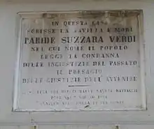 Suzzara Verdi was among the twenty people who met on 2 November 1850 to create the revolutionary committee of Mantua.[3][lower-alpha 1] Following the subsequent Austrian repression, some of these would be executed, and were among the Belfiore martyrs. Suzzara Verdi suffered imprisonment for a month.[2] However, he was not investigated for participating in the conspiracy.[5]