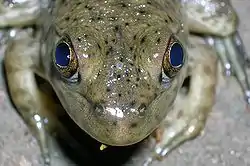 The parietal eye is found in the tuatara, most lizards, frogs, salamanders, certain bony fish, sharks, and lampreys (a kind of jawless fish).[2][3][4] It is absent in mammals, but was present in their closest extinct relatives, the therapsids.[5] It is also absent in turtles and in archosaurs, which includes birds and crocodilians, and their extinct relatives.[6]