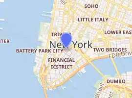 The section of Manhattan where the theatre stood was not stylish: the New Theatre, as it was called, was neighbor to Bridewell Prison, a tent city's worth of squatters, and the local poorhouse.[5] Lewis Hallam, Jr., and John Hodgkinson, both members of the John Street Theatre company, obtained the building's lease. They hired remnants of the Colonial Old American Company to form the nucleus of the theatre's in-house troupe and thus give the establishment the sheen of tradition and American culture.[6] Meanwhile, the men quarreled, and construction continued languorously. The theatre finally held its first performance on January 29, 1798, despite still being under construction. The gross was an impressive $1,232, and, according to theatre historian T. Allston Brown, hundreds of potential patrons had to be turned away.[7]