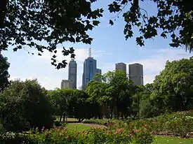 Melbourne is considered to be Australia's garden city, and Victoria as the Garden State.[1][2] There is an abundance of parks and gardens close to the CBD with a variety of common and rare plant species amid landscaped vistas, pedestrian pathways, and tree lined avenues. The phrase Victoria – Garden State was used on Victorian car number plates from the 1970s to 1994,[3][4] and many regional towns have well tended botanic gardens, parks and tree lined avenues.