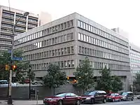 Parran Hall is the former name of an academic building on the campus of the University of Pittsburgh on Fifth Avenue in Pittsburgh, Pennsylvania, United States.[1] The building, constructed to house the Graduate School of Public Health, was completed in 1957, and designed by Eggers & Higgins, architects of the Dirksen Senate Office Building,[2] in the International Style[3] with a major addition by Deeter-Ritchey-Sippel and Crump completed in 1967.[4] The school was founded in 1948 with a $13.6 million grant ($144.7 million today) from the A.W. Mellon Educational and Charitable Trust.[5] It was originally named after Thomas Parran Jr., a former head of the United States Public Health Service at the time the Public Health Service was sponsoring the Tuskegee experiment, in which patients with syphilis were studied but did not receive treatment for the disease.[1]