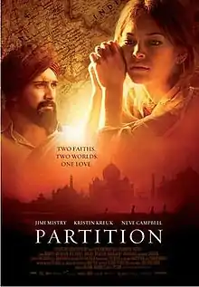 Partition is a 2007 film directed by Vic Sarin, written by Patricia Finn and Vic Sarin, and starring Jimi Mistry and Kristin Kreuk. The film is set in 1947, based on the Partition of India and was partially shot in Kamloops, British Columbia, Canada.
