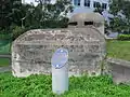 A memorial plaque established by Singapore's National Heritage Board (NHB) in front of the pillbox commemorating the history of the structure.