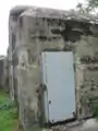 The entrance-door shown here together with one of the pillbox's gun embrasures.