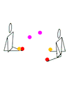 Passing technique varies depending on the prop being used and the position of the jugglers. The standard passing pattern, where the jugglers face each other and are each juggling three props requires a high degree of competence in the solo juggling of that prop. This standard pattern can be described as the props travelling in a rectangle or box shape. Throws across the short end of the box are self throws by each juggler and throws to the other person are parallel throws to the other person. Throws from one juggler to the other are by convention usually thrown from the right hand and caught by the other juggler with the left hand. The tempo of the throws to the other juggler are usually a two count: that is a juggler will throw one prop to themselves from their right hand and then the next prop in the right hand to the other juggler. This is sometimes called every others.[3] The throwing and catching technique for each type of prop is specific to that type of prop.