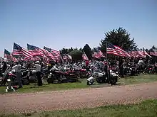 Some media reports have referred to the PGR as a motorcycle club.[6][7][8] Patriot Guard Riders' representatives state that they are "not a motorcycle club", but an "Internet-based organization" and "communication system" by which members are informed of funeral events.[9][10][11][12]