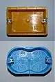 US-style new work wall box (blue) behind two light switches. Not shown: the corresponding faceplate.